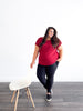 The Cuff Tee is the perfect way to keep your wardrobe looking fresh. The Cuff Tee features a straight fit over the body and a high scooped neckline. It is roomy enough to be comfortable, but still tailored enough to give you a polished look. The “x” stitch detail on the cuff at the sleeve adds the sweetest detail, while the fit keeps things simple and clean.