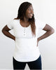 The Short Sleeve Henley has become a Buttercream favourite over the years! This perfect tee has beautiful features like functioning snaps (which makes this top breastfeeding friendly), a cuff at the bicep, a scooped bottom hem and a decorative seam up the back.
